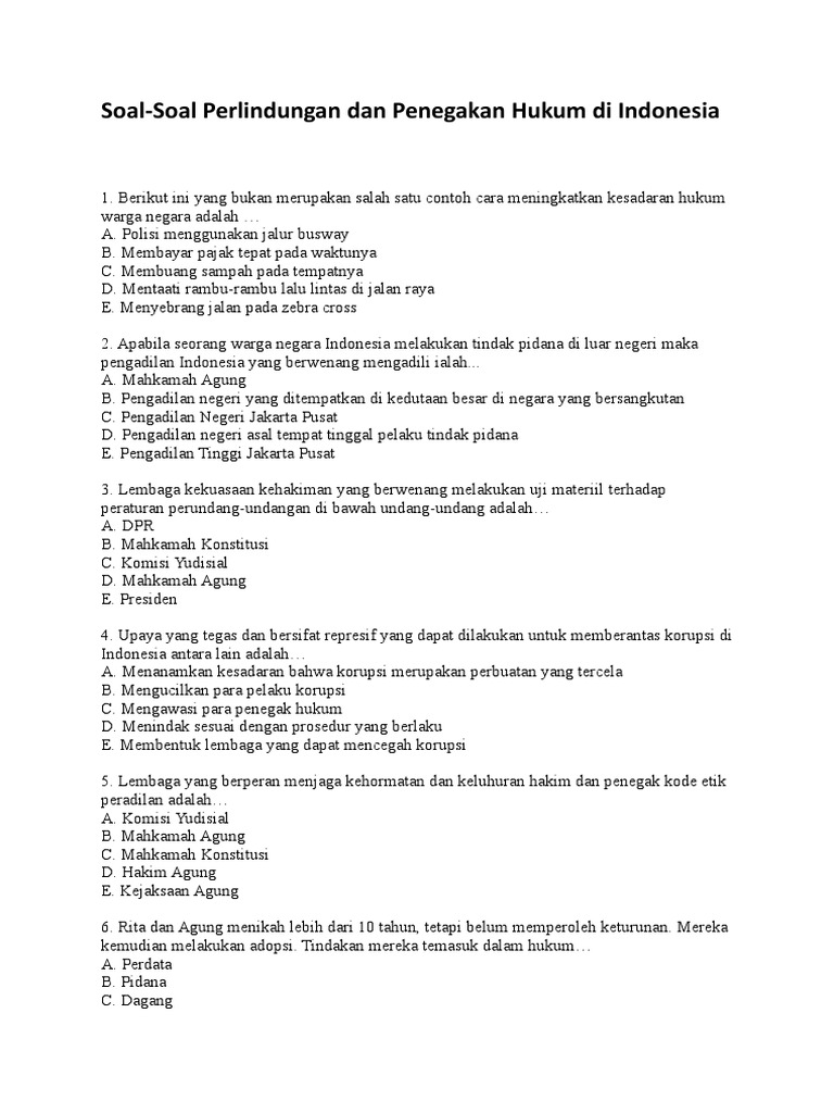 Contoh soal pg tentang perlindungan dan penegakan hukum di indonesia. Maybe you would like to learn more about one of these? Check spelling or type a new query. We did not find results for: