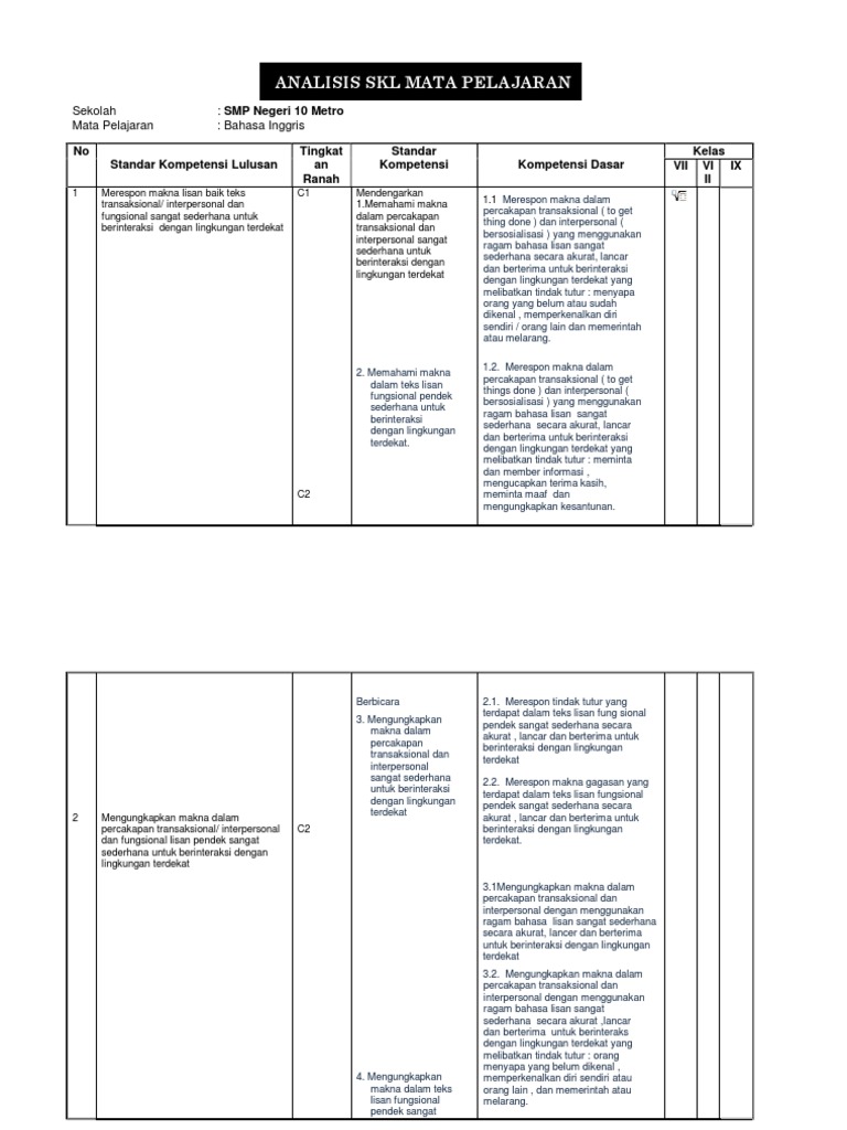 Doc Analisis Keterkaitan Skl Ki Dan Kd Bahasa Inggris Viii Slamet Grkls Academia Edu from 0.academia-photos.com Kd bahasa inggris kelas 8 kurikulum 2013. We did not find results for: Maybe you would like to learn more about one of these? Check spelling or type a new query.